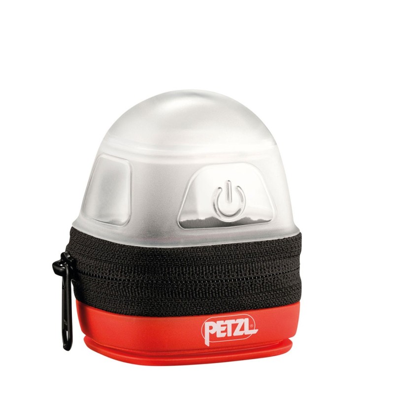 Custodia protettiva da trasporto per lampade frontali compatte Petzl che consente la diffusione della luce in modalità lanterna.