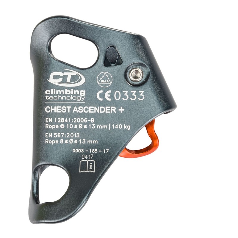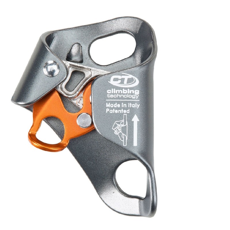 Presenta inoltre tre cave per impedire l’accumulo di fango e ridurre lo sforzo necessario per far scorrere il dispositivo in alto sulla corda in qualsiasi condizione (corda infangata, gelata etc);