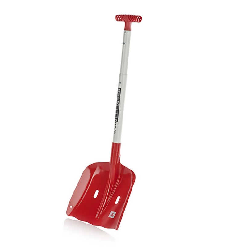 La lama in alluminio rinforzata ha uno spessore di 2 mm, 24 cm di lunghezza e larghezza che permettono, pur mantenendo un peso contenuto, di essere efficace su ogni tipo di neve. L'asta, anch'essa in alluminio, ha un profilo ovale e un impugnatura a T, ergonomica e facile da impugnare.
