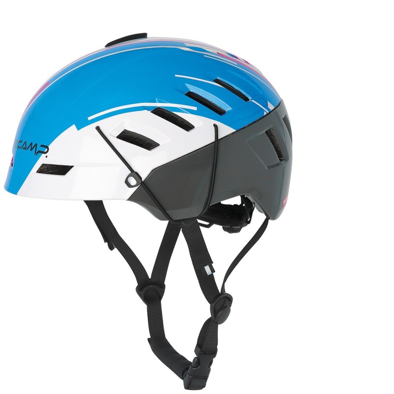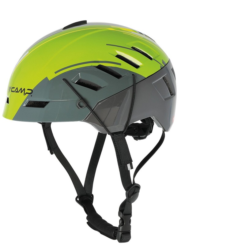 Casco conforme al regolamento ISMF che prevede la doppia omologazione alle norme EN 12492 (alpinismo) e EN 1077/B (sci alpino).