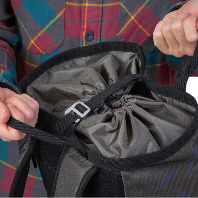 Zaino con capacità di 26 litri e caricamento dall'alto, progettato per l'uso quotidiano.
