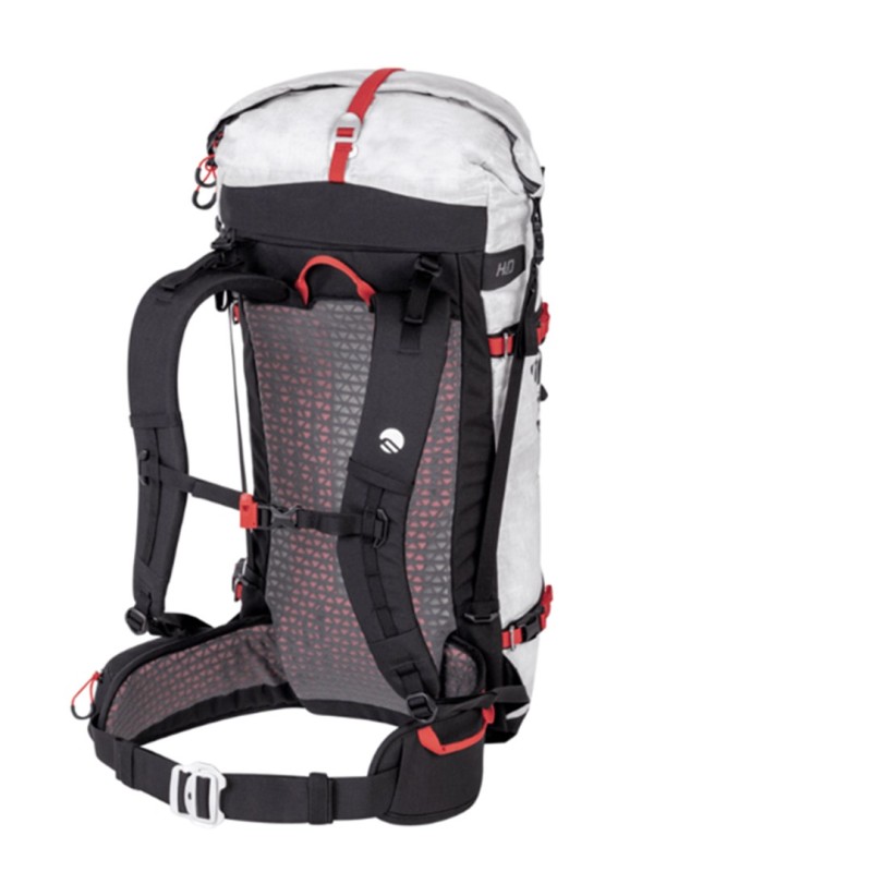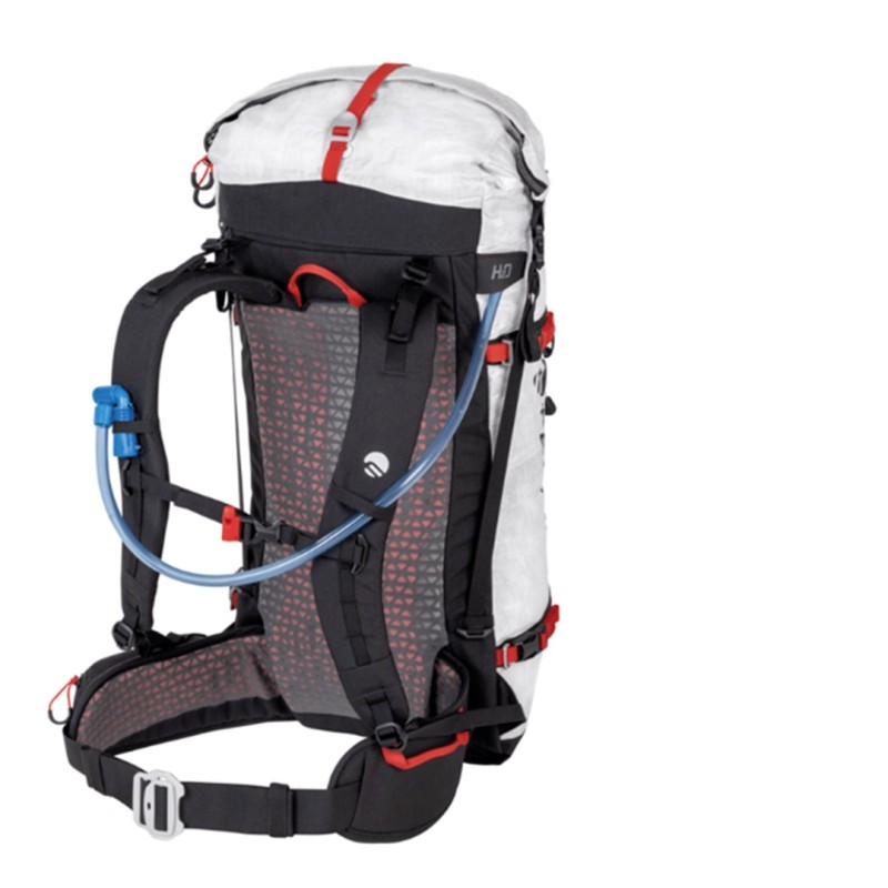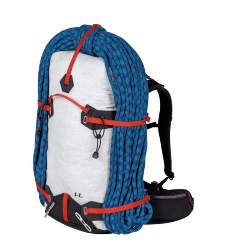 Zaino da alpinismo realizzato in Dyneema® Composite Hybrid 3.2, Cordura® Nylon e rinforzi in SuperFabric® per garantire un rapporto ottimale tra resistenza e leggerezza.