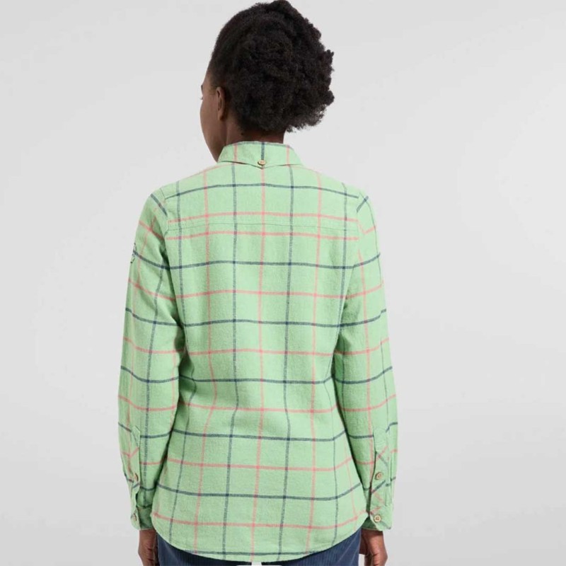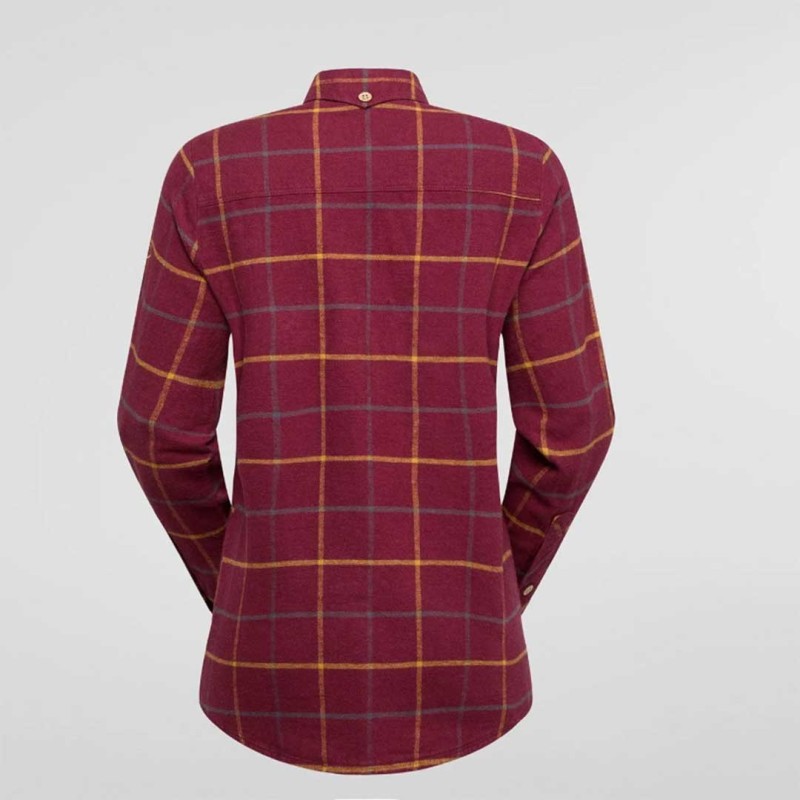 La classica camicia di flanella, dal fit regular, in versione femminile, in misto cotone e poliestere, con bottoni unici in noce di cocco.