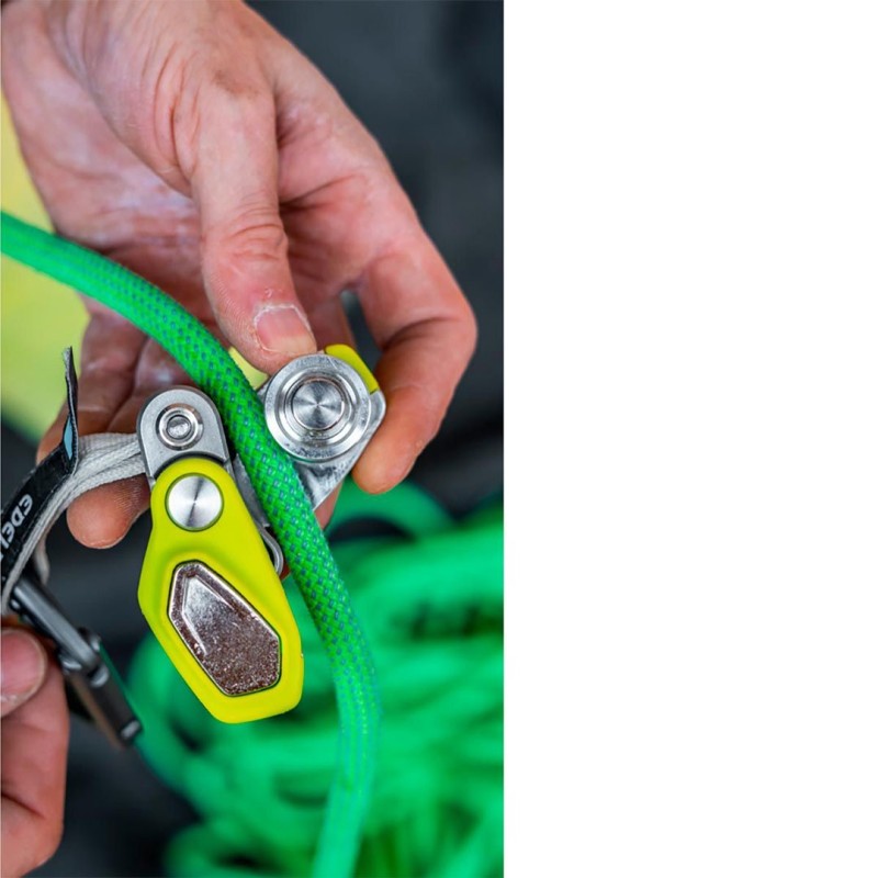 Edelrid Ohmega, il dispositivo di frenata assistita che rivoluziona l’esperienza di cordata. Con un peso di soli 190 g, il compatto Ohmega è un assistente di frenata estremamente versatile, adatto a un’ampia gamma di utenti. MADE IN GERMANY.