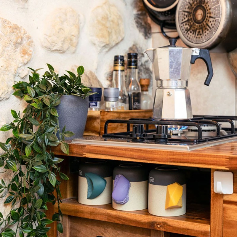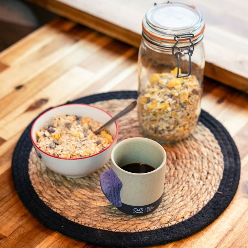 Tazza con impugnatura da arrampicata design by Simon Favrot, in ceramica con finitura effetto gres.