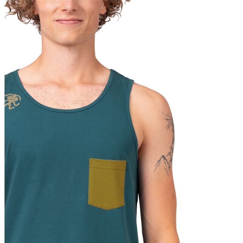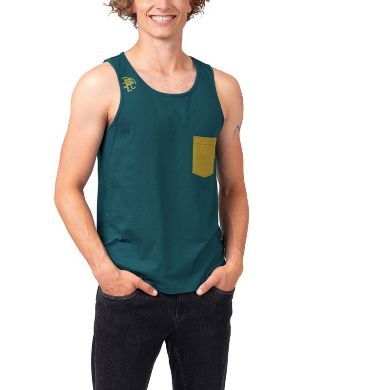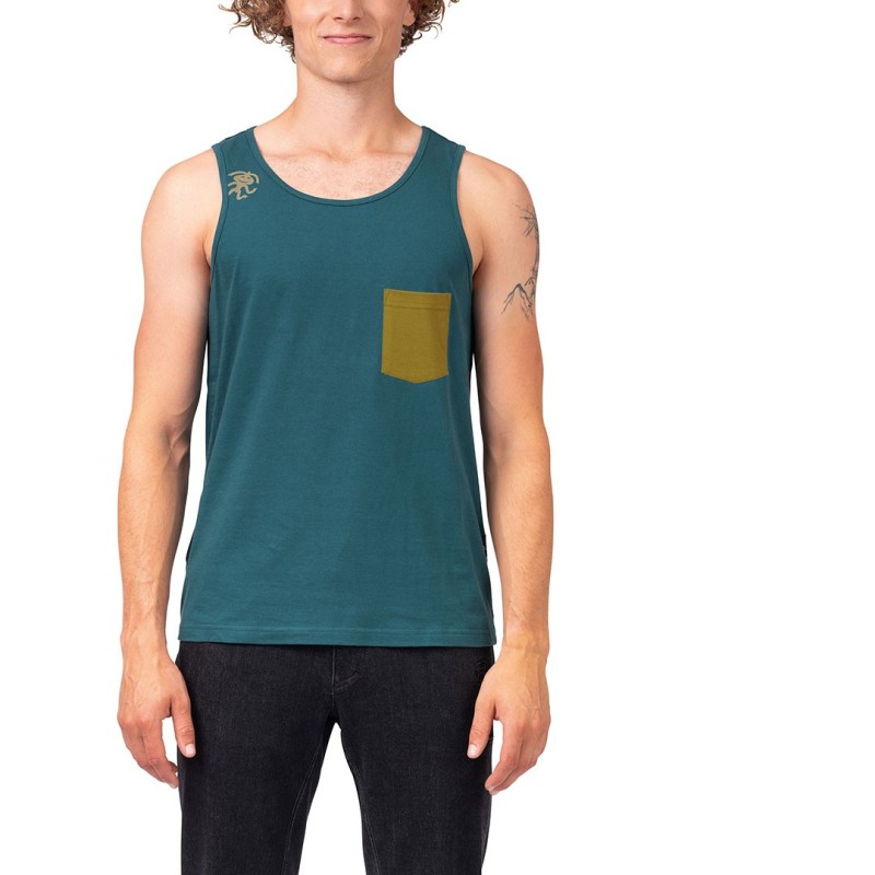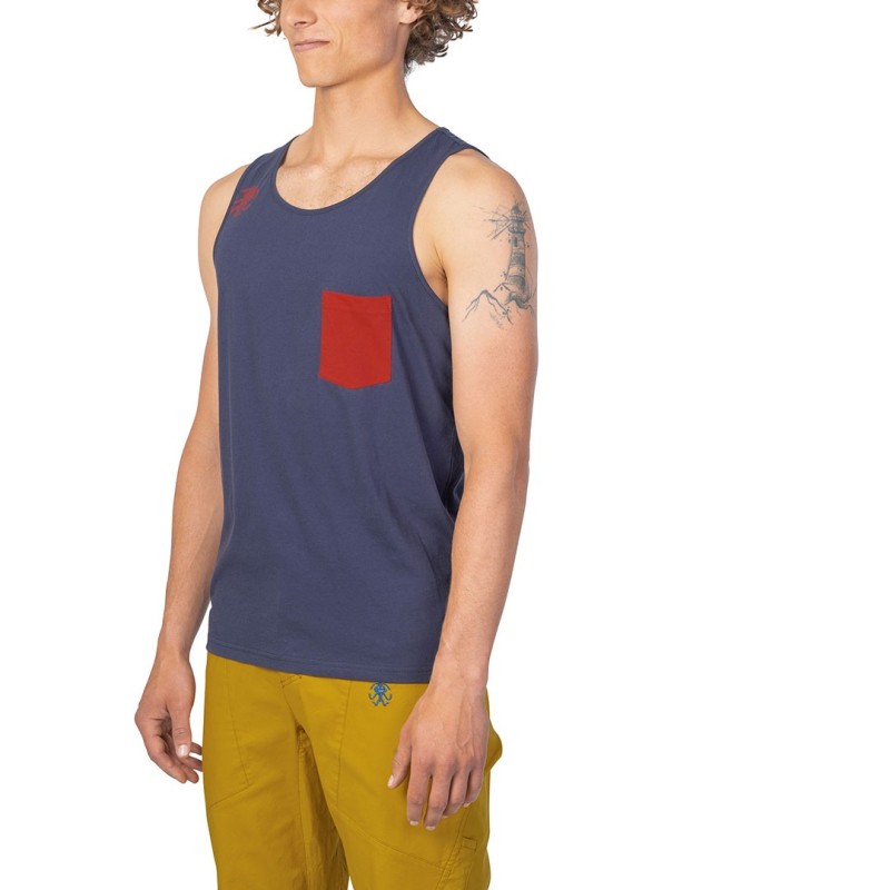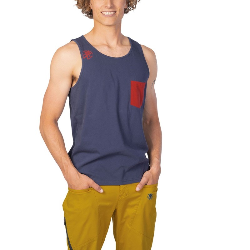 Canotta leggera in tessuto 100% cotone organico morbido e traspirante per una libertà di movimento illimitata durante l'arrampicata.