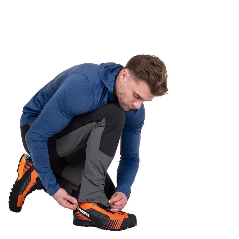 I pantaloni softshell Ibex Alpine, con dettagli funzionali ben studiati e proprietà idrorepellenti, sono ideali per alpinismo e lunghe giornate in montagna, combinano protezione dalle intemperie, durata e libertà di movimento.