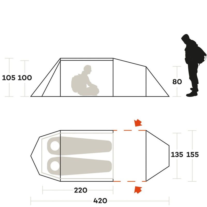 Volta 2 è una tenda tunnel a tre archi, leggera, spaziosa e resistente.