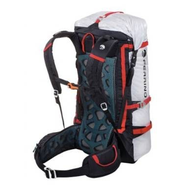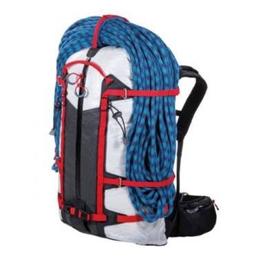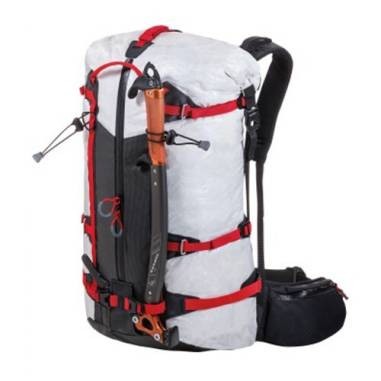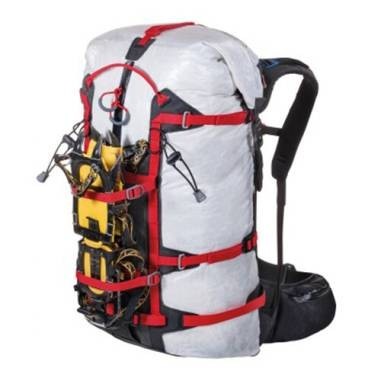 Zaino da alpinismo realizzato in Dyneema® Composite Fabric, Cordura® Nylon e rinforzi in SuperFabric® per garantire un rapporto ottimale tra resistenza e leggerezza.