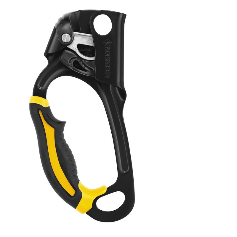 La maniglia bloccante ASCENSION è dotata di un grande foro inferiore per collegare facilmente due moschettoni per il cordino e il pedale.